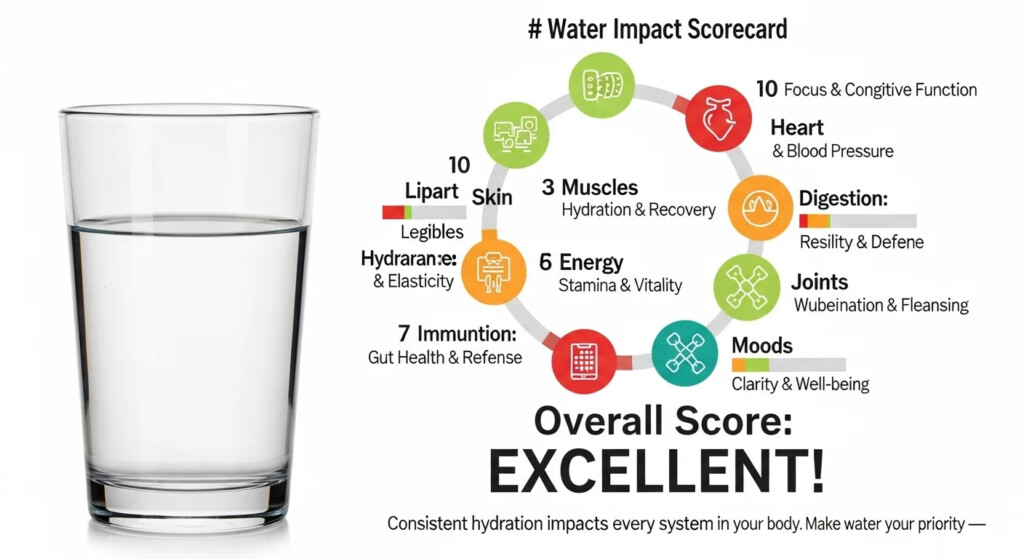 Water keeps every cell alive, fuels muscles, sharpens focus, and flushes toxins. Without it, energy crashes, joints ache, and metabolism stalls within hours.