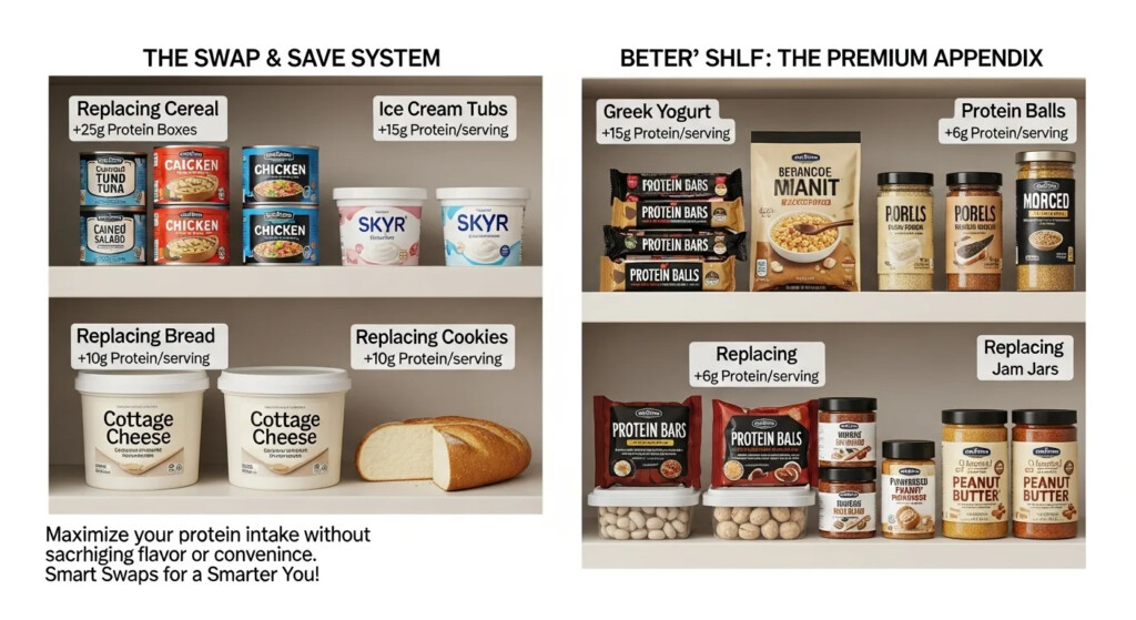 - Swap low-protein staples: eggs for cereal, chicken for breading, casein-rich cottage cheese for snacks.