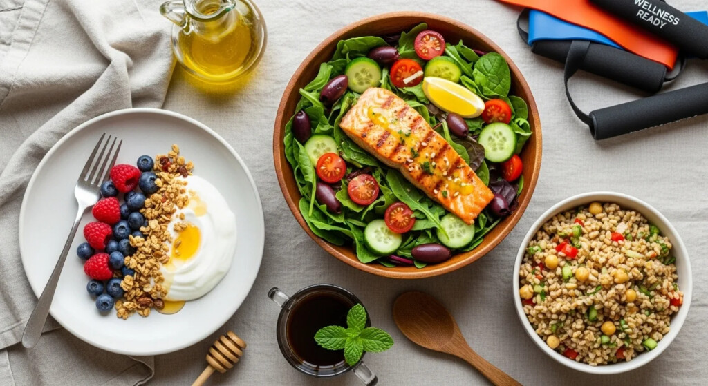 For meals, try grilled salmon with quinoa and kale. Or chickpea salad with olive oil. Keep it easy. Use as a guide.